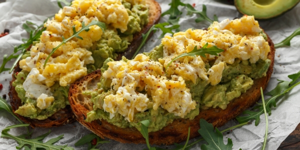 • Scrambled eggs with whole-wheat toast and avocado: A good source of protein, fiber, and healthy fats.