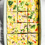 Store the squares in an airtight container for up to 3 days. If you need them to last longer, you can freeze individual slices wrapped in parchment paper. When you’re ready to eat, a quick wrap in a damp paper towel before microwaving keeps the eggs moist and tender.