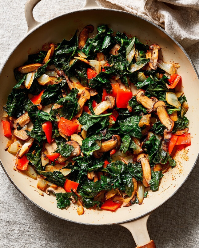 - Wilt the greens: Stir in the baby kale, garlic powder, crushed red pepper, and smoked paprika. Cook for 1–2 minutes until the kale is wilted down. Remove from heat and let the mixture cool for 5 minutes.