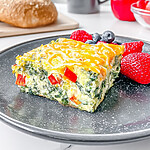 Nutritional info (per 1 square serving): Calories: 155 | Total Fat: 11.5g (Saturated: 5.5g) | Cholesterol: 185mg | Sodium: 270mg | Total Carbs: 3.5g (Fiber: 1g, Sugars: 1.5g) | Net Carbs: 2.5g | Protein: 9.5g | Vitamin A: 15% DV | Vitamin C: 25% DV