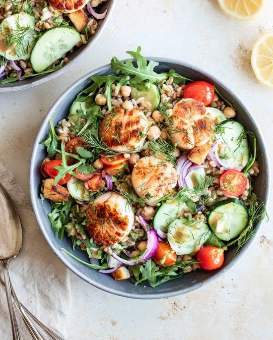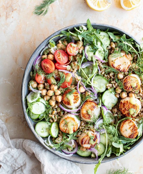 Definitely! This makes an amazing high fiber Mediterranean lunch idea. To keep it fresh, store the salad base, the vinaigrette, and the cooked scallops in separate containers. You can enjoy the scallops cold or gently reheat them before assembling your salad at lunchtime.