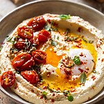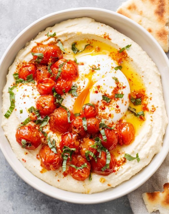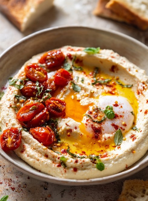 - Assemble Your Masterpiece Bowls: Grab two serving bowls. Spread your hummus evenly between them, and use the back of a spoon to make a little well or indentation in the center of each. Now, spoon that warm, fragrant roasted tomato mixture right into those hummus wells. Finally, gently place two of your perfectly poached eggs on top of the tomatoes in each bowl.