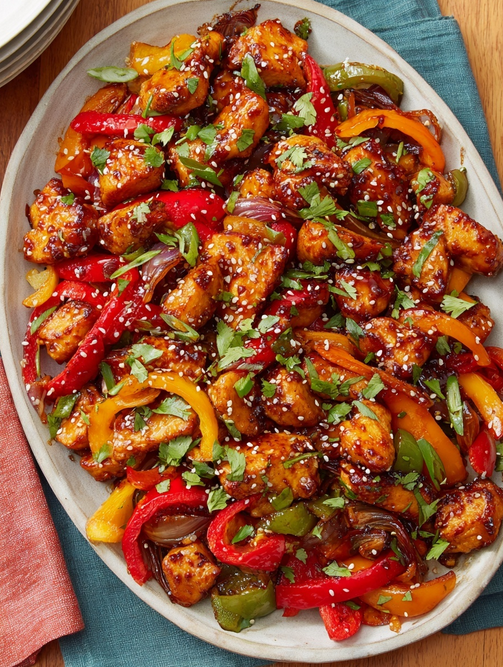 • Vibrant Veggies: The sweetness of the bell peppers and the fresh, crisp snap of the peas don’t just add nutrients; they add texture and their own natural flavors that perfectly complement the savory chicken.