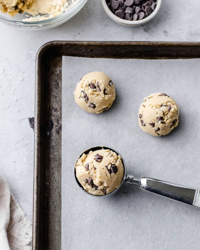 5. Scoop the dough into 10 equal-sized balls using a small cookie scoop or a tablespoon.
