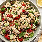 This dish is a powerhouse when it comes to high protein Mediterranean meals. We use flaky, oil-packed tuna and creamy cannellini beans. This combination not only provides tons of satisfying protein and fiber but also gives the salad a wonderful texture. It’s this satisfying combo that makes the salad hearty enough to be a meal on its own.