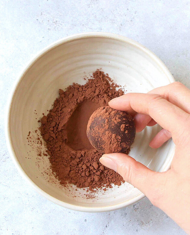 - Shape and Coat: Line a small baking sheet or plate with parchment paper. Use a small melon baller or teaspoon to scoop up portions of the chilled ganache. Roll each portion quickly between your palms to form a ball, then immediately roll it in the cocoa powder to coat.