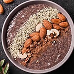 Before serving, top the pudding with the toasted slivered almonds and a sprinkle of hemp hearts.