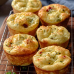 Bake: Transfer the muffin pan to the center rack of your preheated oven. Bake for 35-40 minutes. The Savory Sunrise Egg Clouds are done when they are puffed up, exhibit a light golden-brown top, and a wooden skewer or toothpick inserted into the center of a muffin comes out clean.